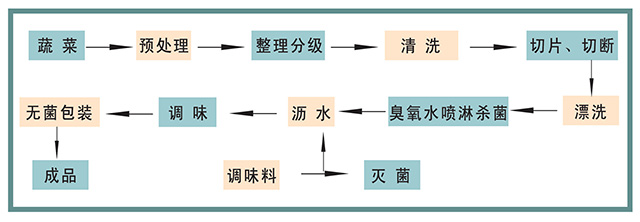 在傳統蔬菜如榨菜、蘿卜、黃瓜等食品加工中,采用包裝后高溫殺菌的傳統工藝,不僅對產品的色澤、質地口感等帶來不利影響,還消耗了大量的能源,利用臭氧水冷殺菌新技術可避免傳統產品加工工藝的不足,還能提高產品品質、降低生產成本,保證殺菌后產品的衛生質量。
